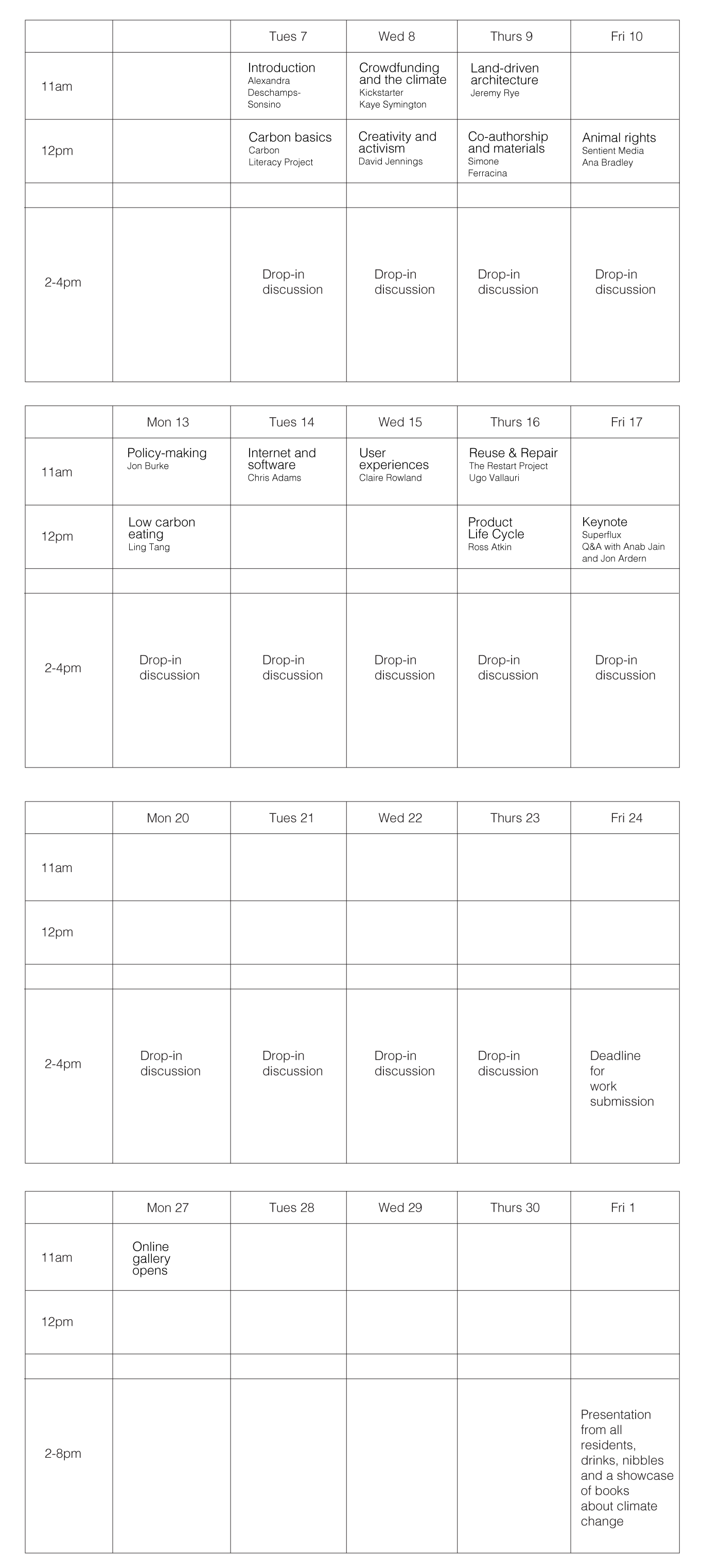 Residents present their work on July 1st at Linear House in Greenwich (and online) between 2- 4pm followed by drinks, nibbles and a showcase of books about climate change. Get your ticket.